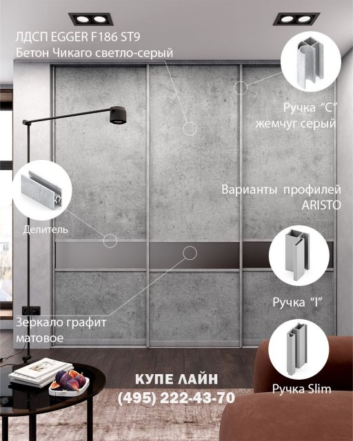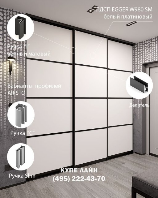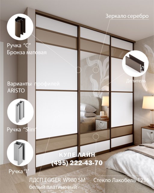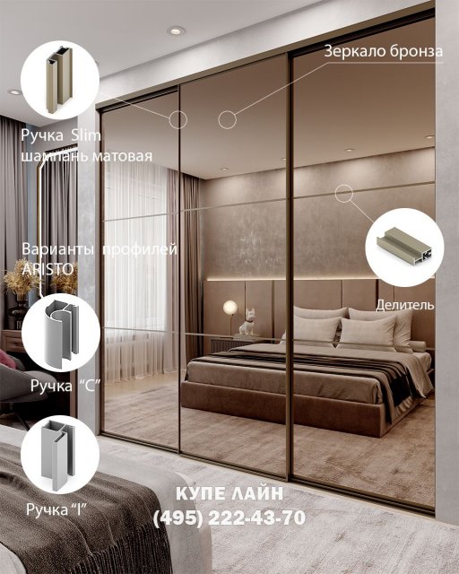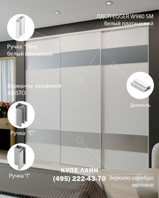 Мы рады приветствовать Вас на сайте производственной компании «Купе Лайн». С 2004 года мы изготавливаем в Москве двери купе по индивидуальным размерам. У нас Вы можете заказать и недорого купить двери купе для встроенного шкафа, в нишу и гардеробной комнаты. Для изготовления раздвижных дверей мы используем надежную высококачественную раздвижную систему АРИСТО.